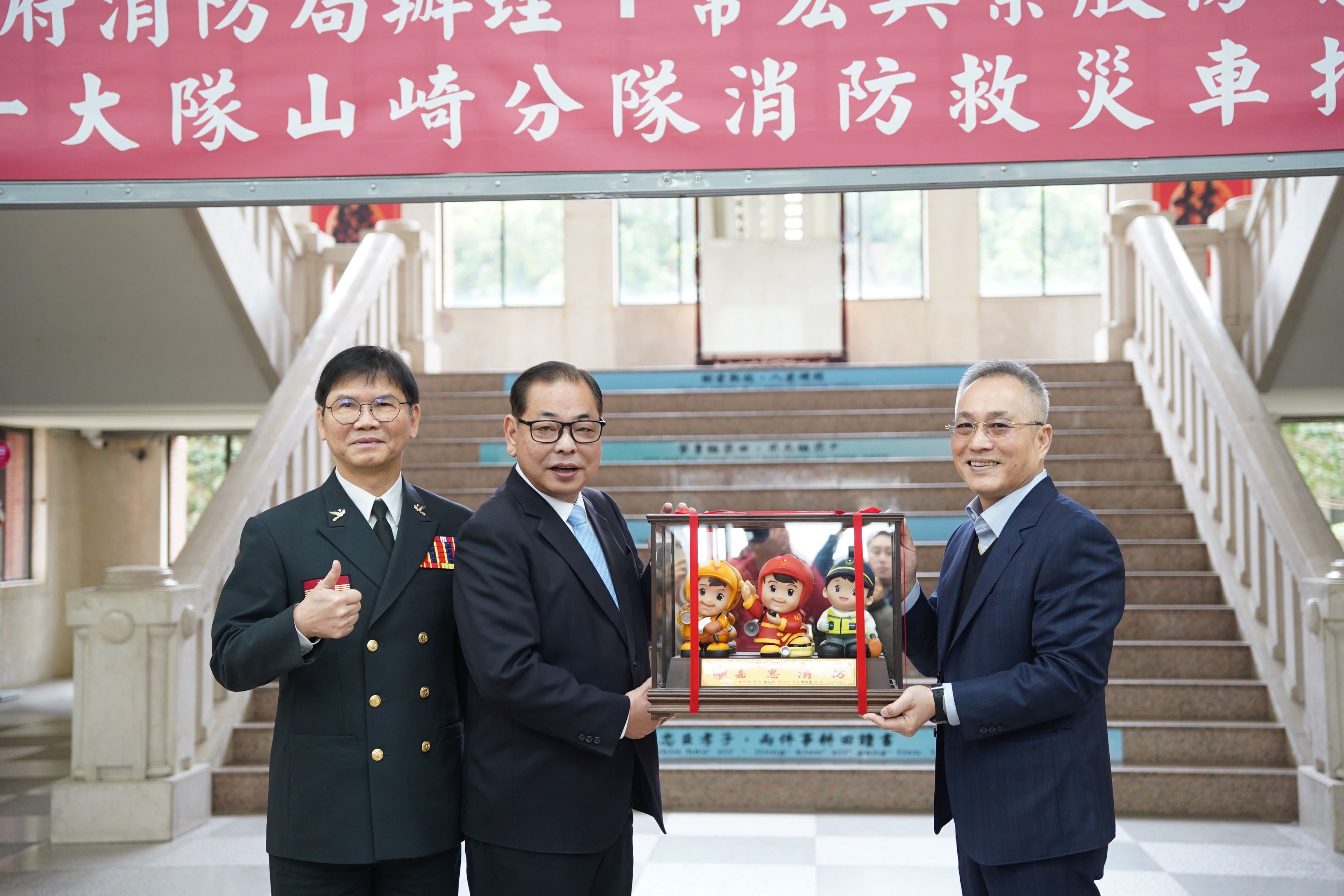 陳見賢表示,縣府逐年提升消防局預算,致力於人力需求及設備更新與汰舊,他指出,政府資源有限,無法一次性完成,只能分年度逐步推進,因此也感謝民間企業拋磚引玉,協助消防局汰換、更新車輛,此次由「常宏興業股份有限公司」捐贈災情勘查車,車輛為四輪傳動的油電混合車型,將有助於山崎分隊運用於救災上。
