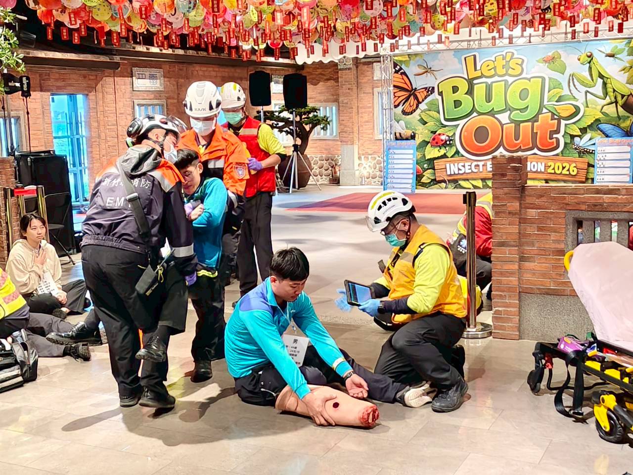 演練中最受矚目的是「斷肢處置」情境。面對大量出血風險,救護人員須在黃金時間內完